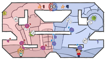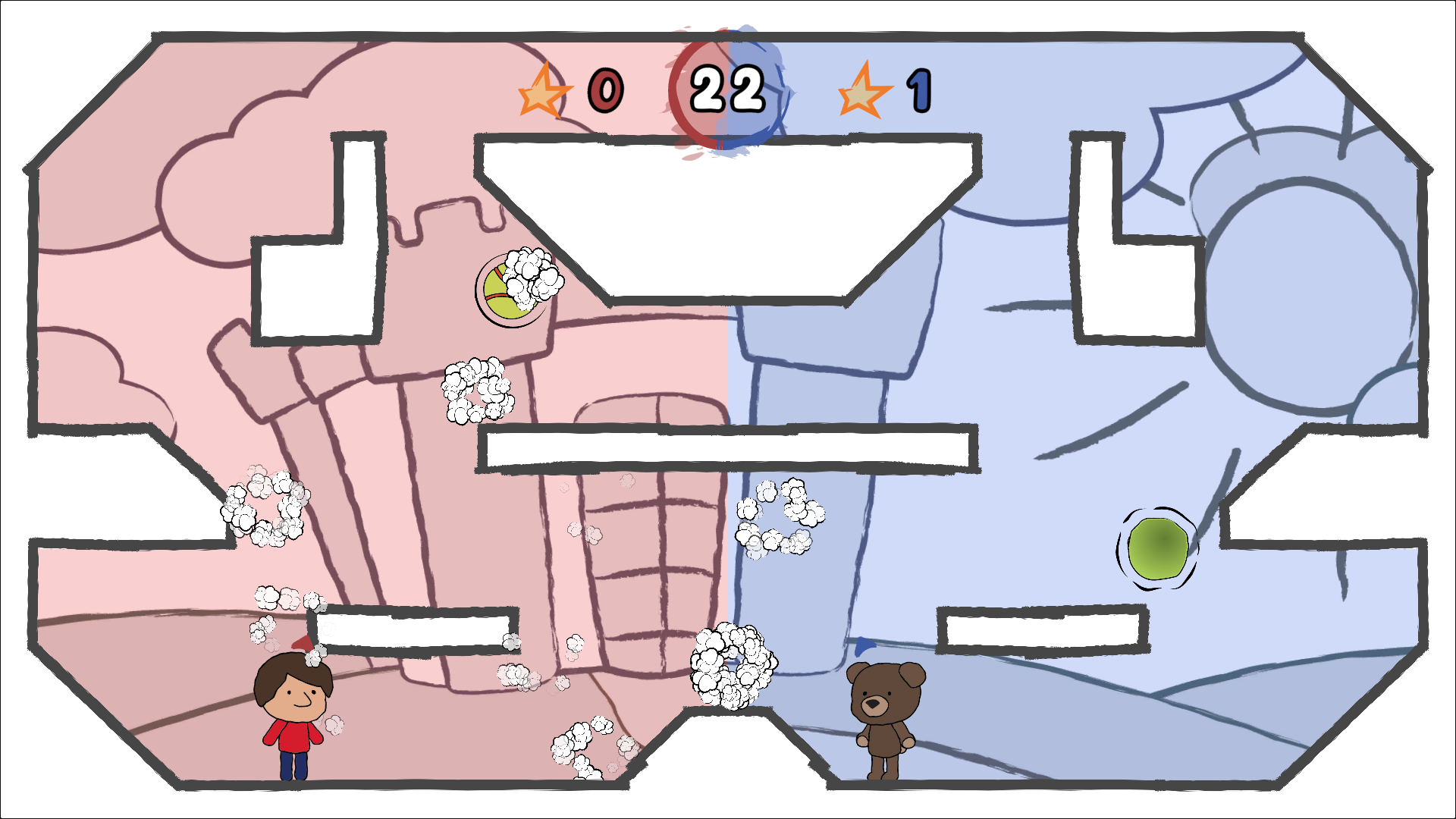 In this 1v1 game, you have to hit your opponent with your bouncing projectiles. Just don't forget - they will come back next round. First to earn 5 points wins the game. Stack up enough balls into certain spots so that your opponent can't even move. Just don't get hit by your own balls. They will hurt.